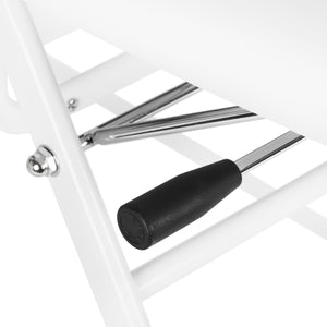 Thanks to the semi-matte finish and the streamlined legs, the metal frame looks elegant and does not overwhelm the space. The base of the chair does not allow to adjust the height of the seat, but it is at a height that should be comfortable during use. The seat is filled with foam and covered with imitation leather in shades of white. Thanks to the use of such material, the equipment is comfortable to use, resistant to moisture and easy to clean. give the seat an ergonomic shape. Simple design and classic colors allow it to fit into any interior.