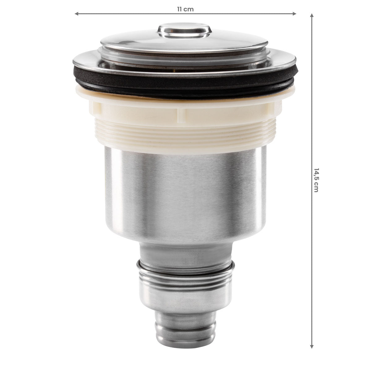 Zestaw zawiera metalowy odpływ + koszyk na włosy + korek spustowy + uszczelki