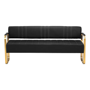 A wide seat finished with synthetic leather in shades of black provides comfort for up to three people, allowing for comfortable waiting for a treatment. Gold-tone elements, minimalist form and elegant stitching emphasize its exclusive character. The Avila sofa is an excellent choice that will emphasize the prestige of your salon, while offering comfort and durability for years.