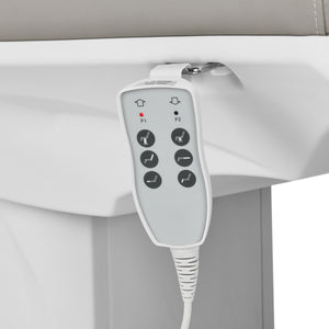 Using a simple, intuitive remote control, the chair can be smoothly adjusted in three planes – it has adjustable seat height and backrest and footrest angles. This allows you to freely set the position appropriate to the procedure being performed at a given moment, which affects the comfort of both the user and the person performing the service. The dimensions and width of the adjustment allow the equipment to be easily used by people of different heights and make it easier to adapt it to the needs of both the client and the person performing the treatment.