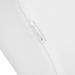 The chair is filled with foam of appropriate hardness and covered with pleasant-to-touch imitation leather in shades of white. Thanks to the use of a material that is easy to keep clean and resistant to selected disinfectants, the equipment is comfortable to use, resistant to moisture and easy to clean. A solid base made of durable white material ensures stability during treatments. Properly profiled hems give the chair a stylish look and make the seat ergonomic.