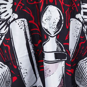 The J-457 hairdressing cape is an essential element of the equipment of every hairdressing or barbering salon. It helps maintain high standards of cleanliness, effectively protecting the client's body and clothing against splashing during hair treatments. It will also be used in other specialized practices, including beauty salons. The decorative pattern on the front adds character to the cape.