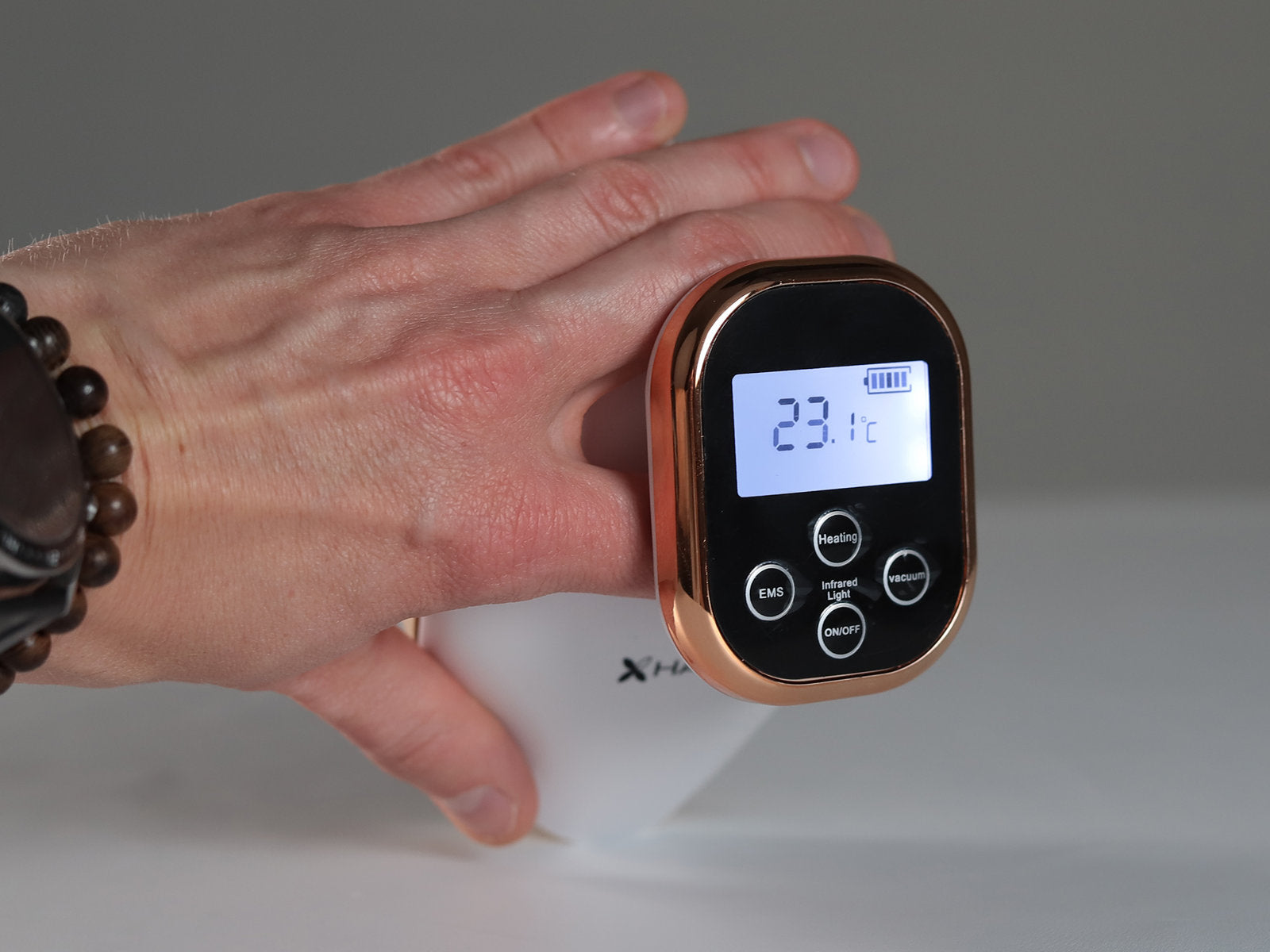 Electric Chinese cupping device with a comfortable handle, equipped with suction power adjustment, temperature control, EMS electrostimulation, and 10 magnetic points. This user-friendly and multifunctional device is designed for cupping and anti-cellulite massage, combining modern technology with the tradition of Chinese medicine.
