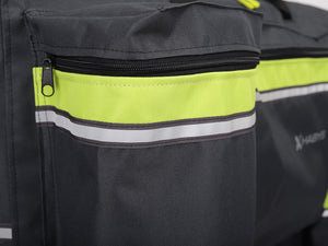 The Habys City massage table cover - backpack is made of very durable material. It is perfect for transportation, protecting the table from damage. It has 4 spacious pockets, a shoulder strap, a transport handle, and reflectors. Additionally, the cover is equipped with comfortable soft shoulder straps and adjustable straps, thanks to which you can carry your table like a backpack. You can fit the necessary massage accessories in it and conveniently reach the client, even in difficult terrain conditions.
