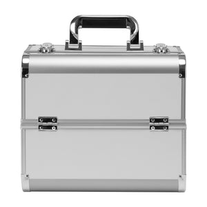 The modern design with smooth silver-finished walls and metallic accents adds a touch of elegance. The handle makes transport easier, which is especially important for mobile stylists. Made from durable, damage-resistant materials, it ensures everyday comfort of use. A sturdy latch closure with a key keeps the contents protected, while the lightweight and durable structure makes the case easy to carry.
