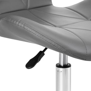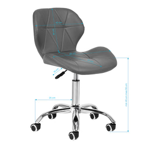 The five-star base in chrome shades is equipped with rubberized wheels, providing considerable mobility and allowing the furniture to move freely around the workplace. The seat is upholstered with pleasant-to-touch faux leather in an elegant shade of gray. The material guarantees durability, resistance to moisture, and ease of cleaning. The design is complemented by stylish stitching, emphasizing the modern look.