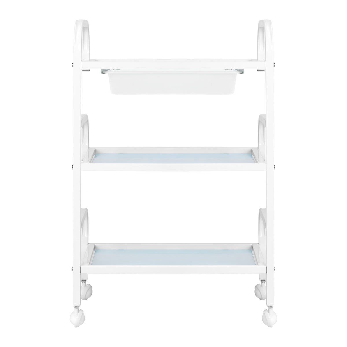 The cosmetic table Basic 121 is a functional piece of furniture that will work perfectly in any beauty salon or SPA. The lightweight construction makes daily work easier, while three glass shelves provide convenient storage of cosmetics, accessories and equipment. An additional tray under the top shelf allows quick access to the most frequently used tools. Minimalist design adds a professional character to the interior.