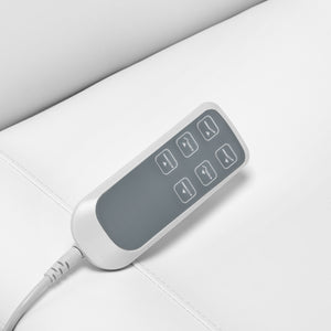 The set includes: seat with base, wired remote control, headrest pillow, power supply.