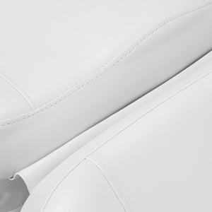 The chair is filled with contoured foam and covered with pleasant-to-touch synthetic leather in shades of white. The material used makes the equipment easy to clean, as well as resistant to moisture and selected disinfectants. A solid base made of durable white material ensures stability during treatments. Properly profiled hems give the chair a stylish look and make the seat ergonomic. Minimalist, simple design and classic colors allow it to fit into any interior.