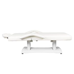 electric cosmetic bed adjustable in height in a very wide range from 58 to 80 cm. backrest and height are adjustable by remote control. a headrest with an opening for the face is attached to the backrest. a wide piece of furniture (75 cm), with a thick and very comfortable mattress. the bunk is very stable. it is upholstered with high-quality eco-leather.