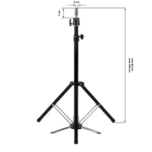 The height adjustment range is from 80 to 146 cm, allowing the tripod to be easily adjusted to the height of the hairdresser and the type of styling being performed. The ability to adjust the angle of the head allows for precise manoeuvring and convenient adjustment of the position to suit the particular working technique. The tapered stem has a diameter of 2 cm at the narrowest point and 2,9 cm at the base. Its simple design makes it easy to use, even for beginners, and its versatility will be appreciated by experienced stylists.