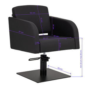 The Gabbiano Elda hairdressing chair combines minimalist design with functionality and everyday comfort. Streamlined lines give it a light and modern character, while the stable, square base in matte black further emphasises its style. The soft foam filling combined with soft-touch synthetic leather in shades of black ensures comfort even during long treatments. Carefully selected materials ensure durability, moisture resistance, and ease of cleaning. The chair fits perfectly into both modern and classic interiors, emphasising the professional character of the salon