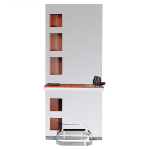 a modern hairdressing console with a large mirror and handy shelves on both sides. the contents of the shelves on one side are visible through the top-class finish "windows". an elegant and at the same time universal element of the interior that will emphasize the character of any living room.
