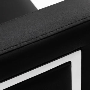 The armchair is upholstered in ecological leather and rotates around its axis.