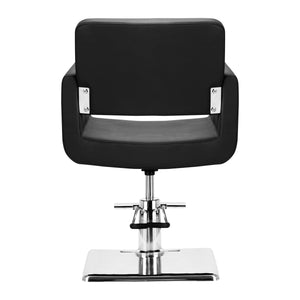 The solid, square base ensures stability during use, while its polished, smooth surface gives an elegant appearance. The seat filled with durable, deformation-resistant foam and upholstered with pleasant-to-touch synthetic leather is durable, resistant to moisture and easy to clean. The classic black emphasizes the timeless design, which harmoniously fits into both modern and traditional interiors of hairdressing salons.