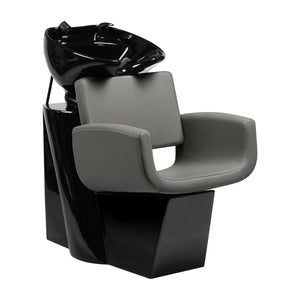 The deep, ceramic bowl in shades of black reduces splashing of water and cosmetics used during treatments. The adjustable tilt angle allows for customization to individual needs. The durable material is resistant to stains, scratches, and chemicals, and the smooth surface makes it easy to clean. The ergonomically contoured collar provides comfortable head support.