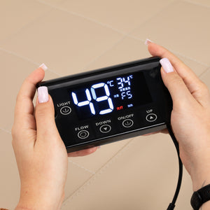 The intuitive touch panel allows for full control over treatment parameters and ease of use. It allows you to adjust the operating time and water temperature, as well as monitor their current values on a clear, easy-to-read display. Additionally, the panel allows you to activate the light therapy function, which illuminates the bowl, creating an atmosphere of relaxation and luxury. The set also includes a remote control, which allows you to conveniently control the steam therapy device from a distance.