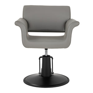 The Gabbiano Lucca hairdressing chair combines modern simplicity with the comfort of everyday use. The round, black base ensures stability, while synthetic leather upholstery in shades of grey ensures comfort during treatments. Durable, moisture-resistant materials make this model not only comfortable but also exceptionally easy to care for, maintaining its aesthetic appearance for years. The distinctive outwardly curved armrests give the chair an elegant look while also supporting a comfortable position for the client. This versatile model will fit perfectly into both modern and more classic interiors, emphasising the professional style of the salon