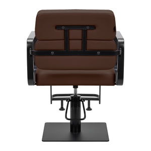 The full rotation mechanism of the chair makes the hairdresser's work more effective and comfortable. A solid, flat, square-shaped base guarantees stability during use. The matte-finished, smooth surface gives the element an elegant look and makes it easy to keep clean. A comfortable seat with foam filling ensures high comfort of use, even during many hours of treatments. Geometric, metal armrests allow for the correct positioning of the client's shoulders – this means that he does not bury his head in his shoulders or slouch – which makes it much easier to perform precise treatments, including haircuts. A stylish footrest dedicated to this model provides stable support for the user's feet.