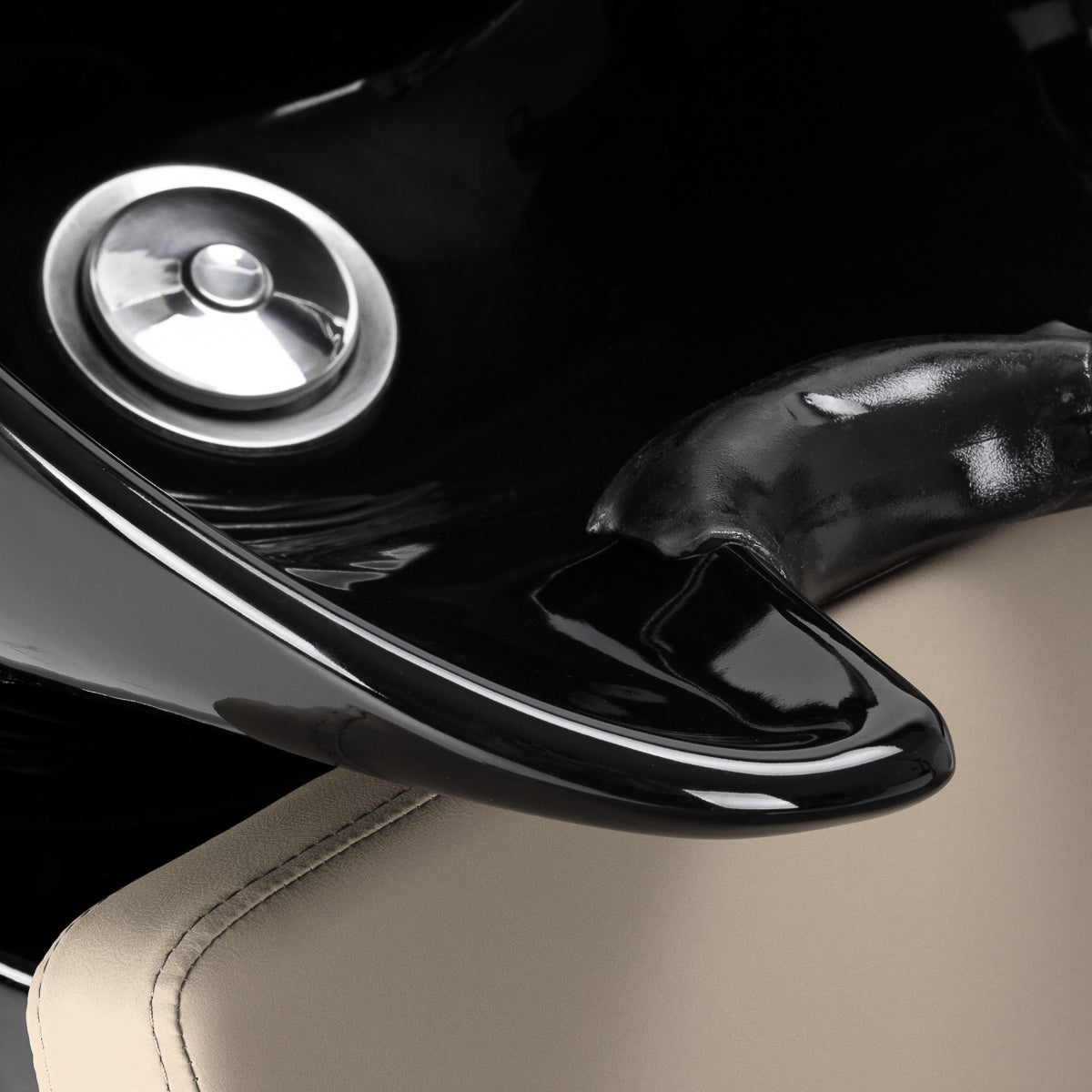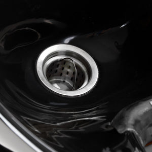 The deep ceramic bowl in shades of black minimises splashing of water and cosmetics during treatments. The adjustable angle of the bowl allows for precise adjustment to the customer's needs. Made of durable material, it is resistant to discolouration, scratches and chemicals, and its smooth surface makes it easy to keep clean. The ergonomically contoured collar provides comfortable head support, and the black plastic cover eliminates the feeling of cold when in contact with the ceramic.