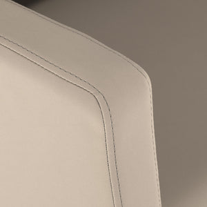 The geometrically shaped chair combines modern simplicity with comfort of use. The seat and armrests with gentle angles create a harmonious whole, ensuring a comfortable position during treatments, while the backrest with an optimal angle of inclination supports correct posture and relaxation. The high-quality synthetic leather upholstery in shades of grey and beige is use- and moisture-resistant, as well as easy to keep clean. The simple, modern form of the furniture emphasises the elegant character of the wash unit, and the complete fittings – tap, shower head and dedicated hoses – provide a full set of tools for work.