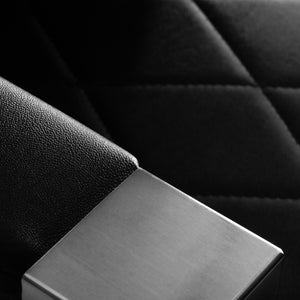 The chair's solid round base construction ensures stability and excellent user comfort. The seat filling, made of deformation-resistant foam, and the upholstery crafted from soft-touch synthetic leather with a matte finish ensure long-lasting durability and comfort during prolonged use. Stylish stitching on the upholstery adds character, evoking automotive design inspirations that enhance its elegant appearance. This feature also makes the chair moisture-resistant, durable, and easy to clean. The upholstery in black tones gives the chair a unique character, and its minimalist style allows it to blend seamlessly with the decor of any barbershop.