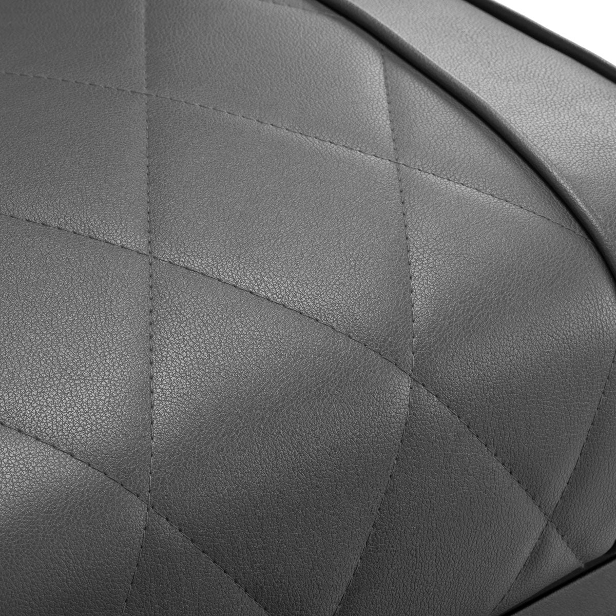 The chair's solid round base construction ensures stability and excellent user comfort. The seat filling, made of deformation-resistant foam, and the upholstery crafted from soft-touch synthetic leather with a matte finish ensure long-lasting durability and comfort during prolonged use. Stylish stitching on the upholstery adds character, evoking automotive design inspirations that enhance its elegant appearance. This feature also makes the chair moisture-resistant, durable, and easy to clean. The upholstery in grey tones gives the chair a unique character, and its minimalist style allows it to blend seamlessly with the decor of any barbershop.
