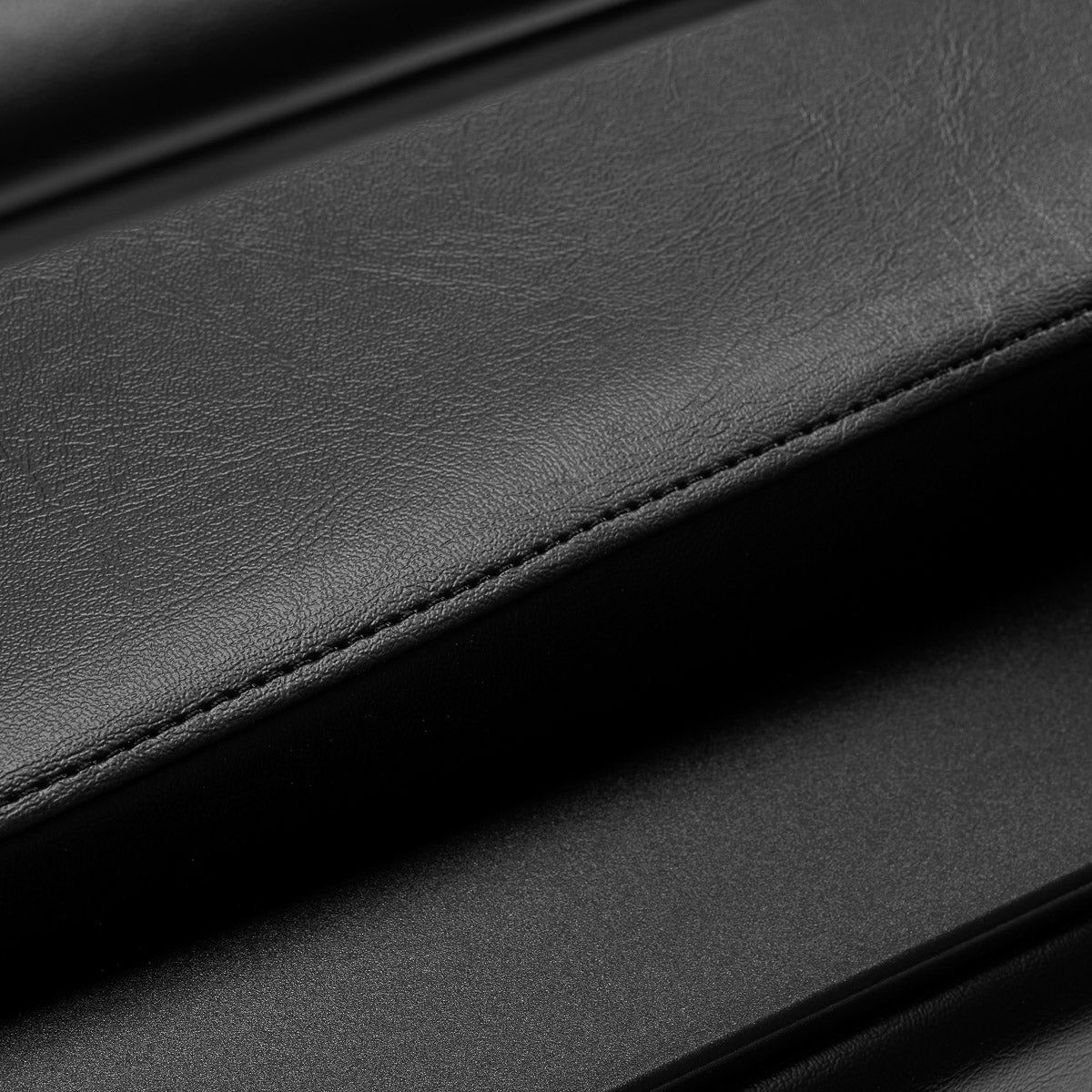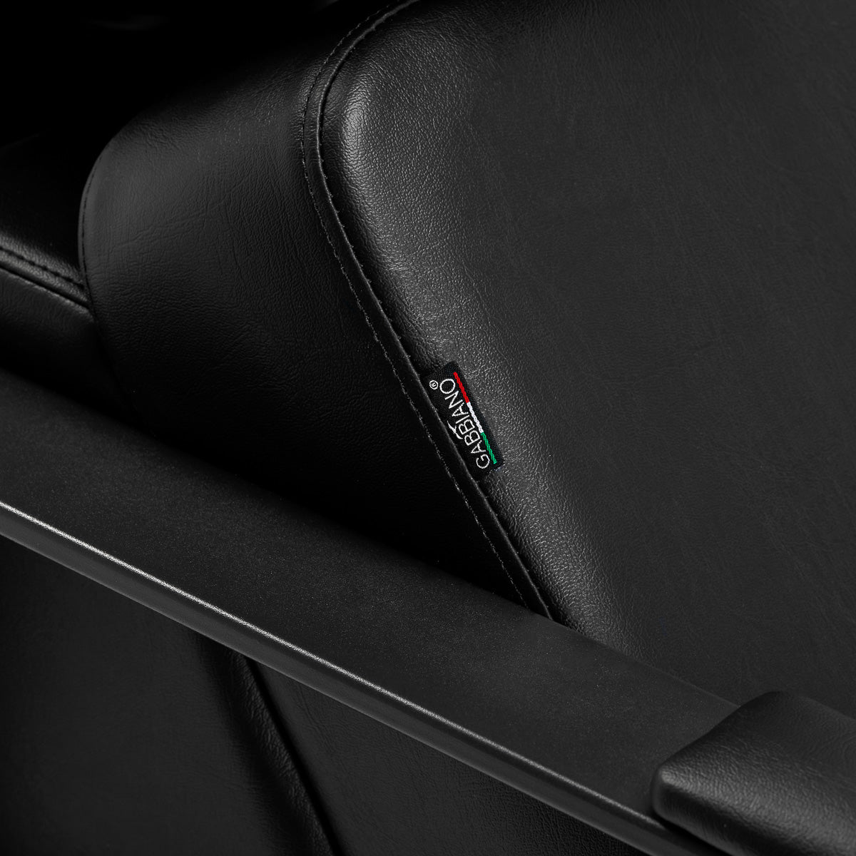 A properly profiled chair filled with durable foam ensures high comfort of use and geometric, partially upholstered armrests allow for correct positioning of the client's shoulders. The backrest is placed at an optimal angle and provides excellent support for the spine. Cover made of synthetic leather in shades of black guarantee long-term durability and ease of cleaning. The original, elegant look of wash adds interior's unique expression. Stabilization legs add stability and subtly emphasize the stylish character of the hairdressing wash unit. The set includes complete fittings with a matte finish in shades of black, including a faucet, shower head and dedicated hoses to provide a complete set of tools for work.