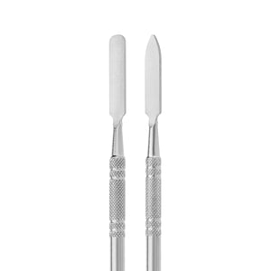 The set also includes a double-sided baguette with a semi-matte finish, which makes mixing products easier. The tool has two functional tips with different shapes, used as needed. The instrument fits perfectly in the hand, and thanks to the elegant grooving on the handle, it does not slip in the hand, making work much easier.