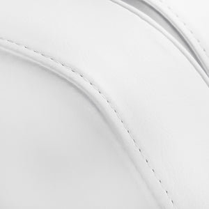 The metal frame – with its semi-matte finish in shades of old gold and streamlined legs – looks elegant and does not overwhelm the space. The base of the chair has a fixed height, so the seat is at a constant level, which should ensure comfort during use. The armchair is filled with foam and covered with imitation leather in shades of white. Thanks to the use of such material, the equipment is comfortable to use, resistant to moisture and easy to clean. Properly profiled hems give an ergonomic shape to the seat. Simple design and classic colors allow it to fit into any interior.