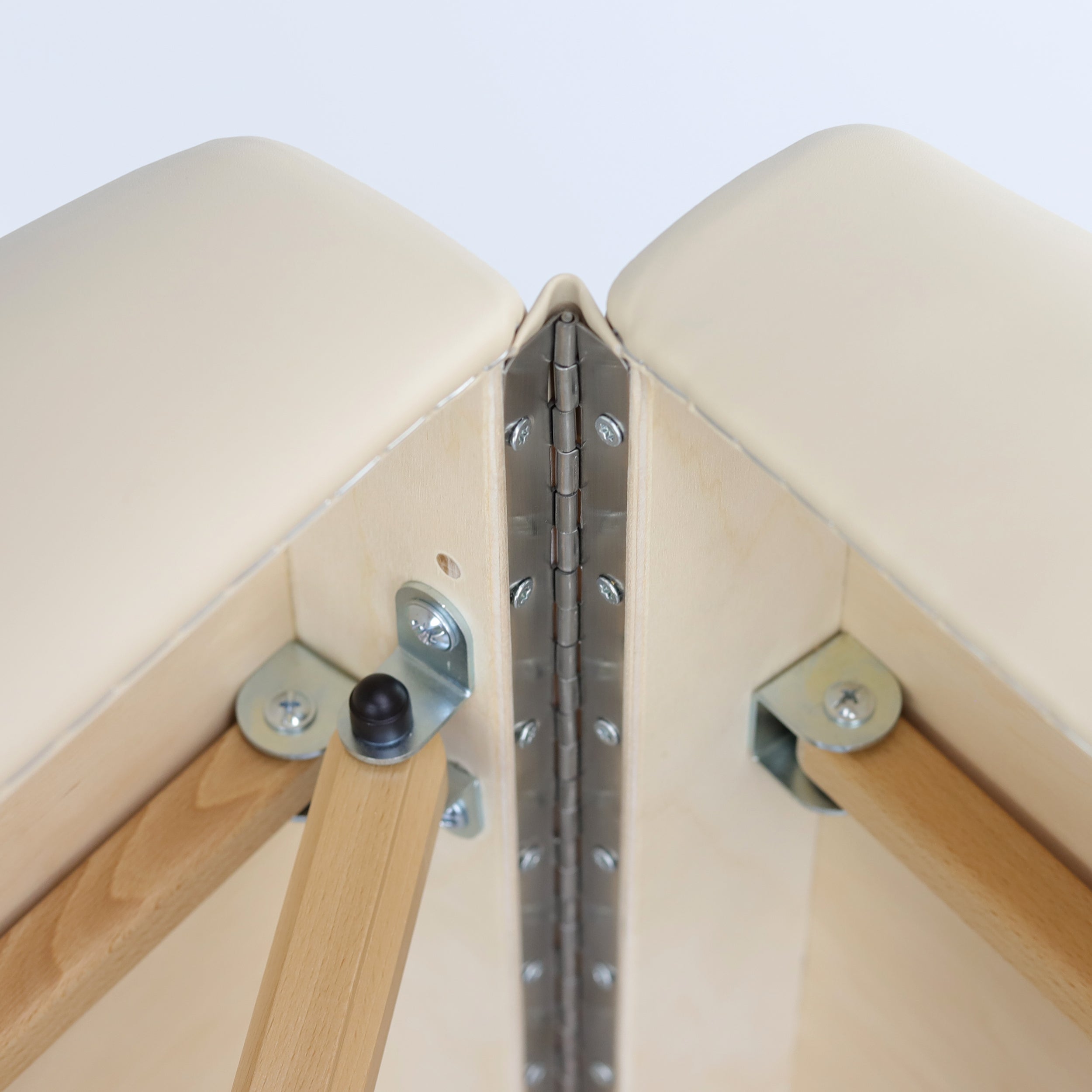 durable stainless steel hinge, protected by a protective upholstery collar