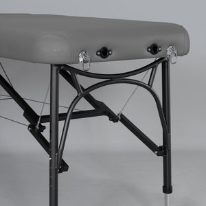 The unique tabletop construction deserves special attention, completely devoid of wooden elements, which contributes to the table's lighter weight. This makes the Luna Light massage table comfortable to carry and transport. It is perfect for mobile massage services with client visits. The U-shaped profile of the aluminum legs ensures high stability and facilitates access to the patient. The Luna Light massage table has quick and easy height adjustment thanks to the special leg profile. The table is refined in every detail.