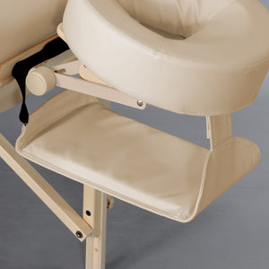 Olivia has a two-part cutout in the tabletop with a system of flexible straps supporting the woman's abdomen and breasts. By adapting the tabletop surface to the shapes of a pregnant woman's body, it is possible to relax the back muscles while lying on the stomach, while maintaining the physiological curves of the spine. Thanks to this, the table facilitates the correct execution of the massage and increases its effectiveness and comfort. The table is refined in every detail.