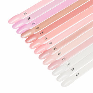 The self-leveling rubber OCHO NAILS FLEX BASE is an excellent choice for thin and brittle nails. It perfectly blends with the natural plate, leveling out any of its imperfections and giving the styling a smooth surface. Appropriate, quite thick consistency facilitates precise application of the product and ensures that the product does not spill on the cuticles, while it can be easily formed on the nail plate. Its formula allows nail extensions of up to 10 mm, guaranteeing durability equal to that of gel manicure. The properties of the rubber mean that the base works with the nail all the time, so that even after setting it remains flexible and resilient. As a result, it cushions the nail during any injuries, protecting against breakage or deformation. The opaque finish and delicate color allow it to enhance the shades of nail polishes applied later. The OCHO NAILS FLEX BASE is available in 13 colors, which allow you to create delicate, everyday styles in a quick and easy way – just protect the base with a top and an aesthetic manicure is ready!
