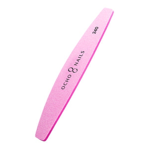 Replaceable pads for the professional Ocho Nails file with a metal core make work easier while ensuring sterility. The 240-grit buffer in the popular crescent shape is perfect for smoothing and removing scratches from acrylic, gel, and acryl-gel designs after filing. It is also suitable for matting and leveling the natural nail plate before a manicure.