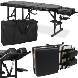 Professional, foldable table for physiotherapy, manual therapy, osteopathy, and elements of chiropractic, ensuring proper ergonomics during massage. It features advanced adjustment options, comfortable foam, and a stable leg structure. Thanks to its appropriate weight, it is convenient to transport.