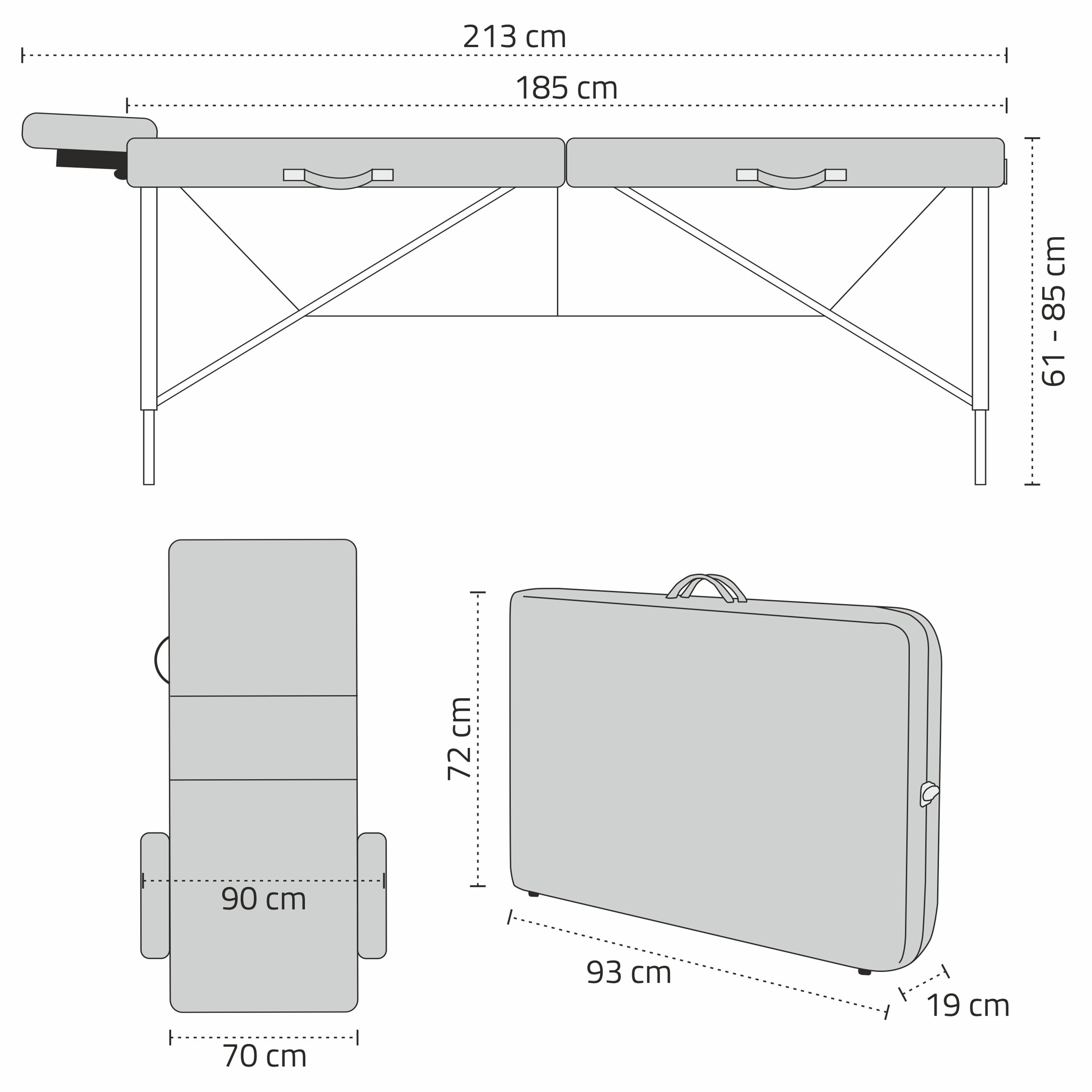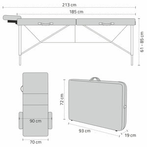 Bianca is a folding massage table with a wooden construction and full equipment including a cover and additional accessories. The model features a three-section top with comfortable 5 cm foam, consisting of two layers of different hardness. The first is soft with a thickness of 4 cm, and the second is slightly harder with a thickness of 1 cm. This makes the table not only exceptionally comfortable for the patient but also comfortable for the therapist.