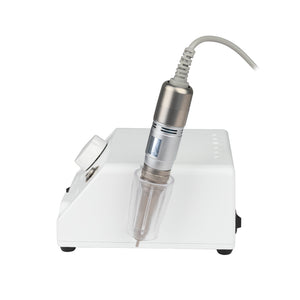 The set includes: Nail drill machine, handpiece, handpiece stand, handle, manual.