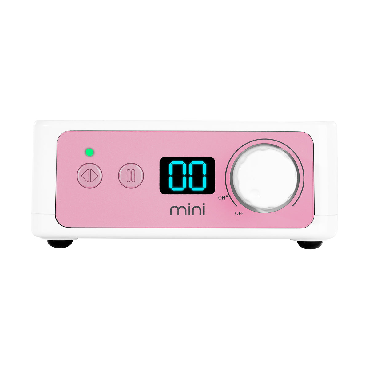 The nail drill is equipped with a clear control panel with a digital display, which plays a key role in monitoring and controlling the operation of the device. The screen informs about the rotational speed at which the unit’s head is currently operating to ensure precise and safe operation of the nail drill machine. The speed can be adjusted using a knob up to 30 000 revolutions per minute, allowing for customization and therefore and thus comfortably perform a wide range of treatments. Additionally, the control diode lights up in green or red, making it easier to recognize the direction of operation of the nail drill machine. The control panel also has a pause function, which allows the user to stop the device, giving greater control over the process. The solutions used make the operation of the nail drill intuitive and very effective.