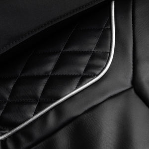 Soft imitation leather in shades of black provides exceptional comfort of use and ease of cleaning. This material is not only aesthetically pleasing, but also resistant to moisture, which increases its functionality. The outer elements in silver combined with a structural finish in black tones give the chair a modern, stylish look. The compact form and subdued colours make the model fit harmoniously into various interior designs. Sakura Prime 108 is an excellent choice for people looking for everyday relaxation – especially after an intense day or demanding physical effort.