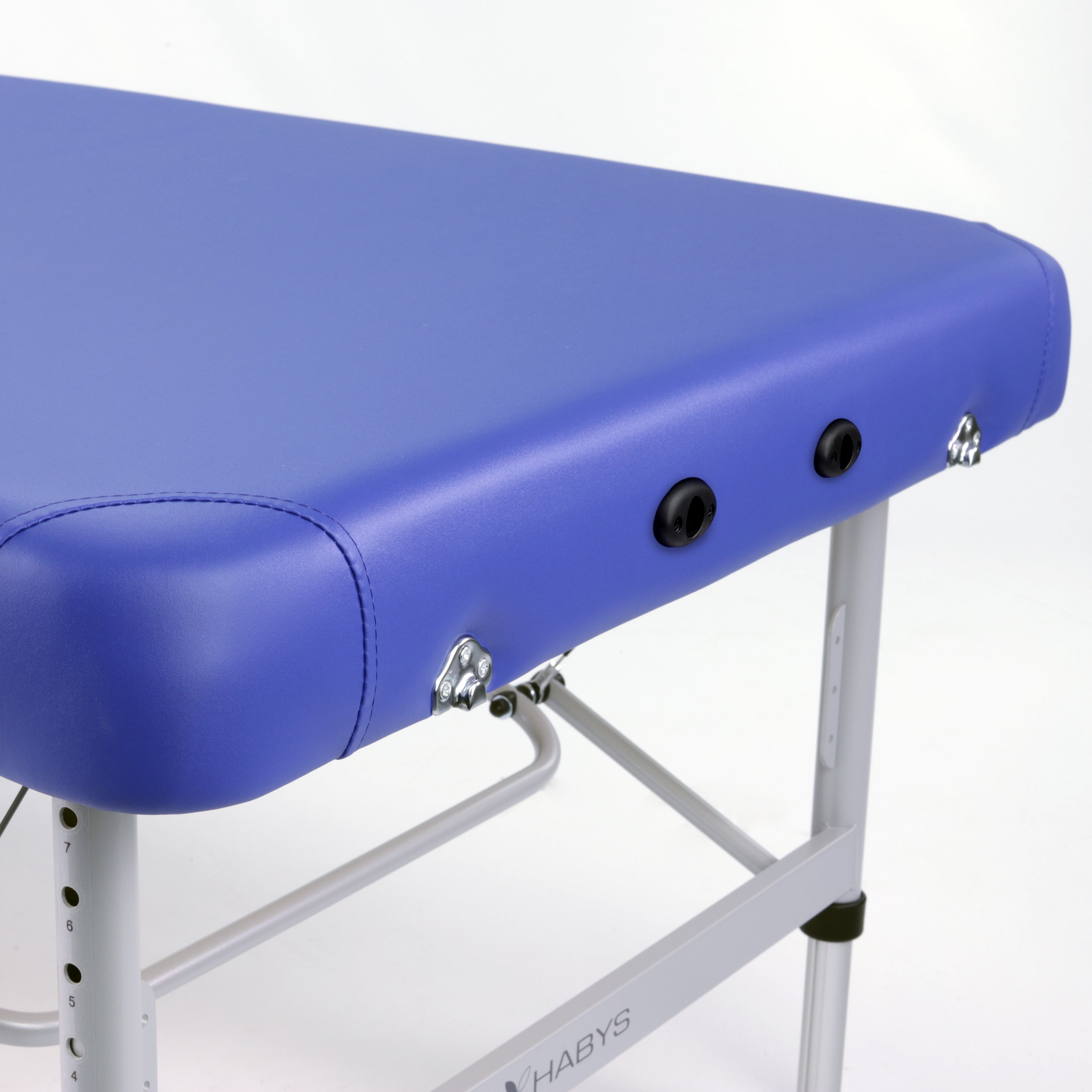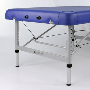 HABYS table dedicated to Feldenkrais and Ilan Lev therapies. Created in collaboration with therapists and trainers. Thanks to the use of three pairs of legs, the table is distinguished by its very high stability. The two-layer top with a surface of 80 x 192 cm provides an optimal surface for working with the Feldenkrais and Ilan Lev methods. The lower layer of the top with a harder foam provides adequate resistance to the patient's movement, while the upper layer ensures adequate comfort.