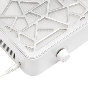 The large absorption surface allows both hands to be comfortably positioned above the device, and the high efficiency of the absorber directs contaminants directly to the filter, leaving the workstation clean and dust-free. Ventilation holes on the sides ensure efficient airflow and stable fan operation for longer periods of time, reducing the risk of overheating. A safety sensor automatically stops the device and activates an audible signal if the cover is removed, increasing control and safety during operation.