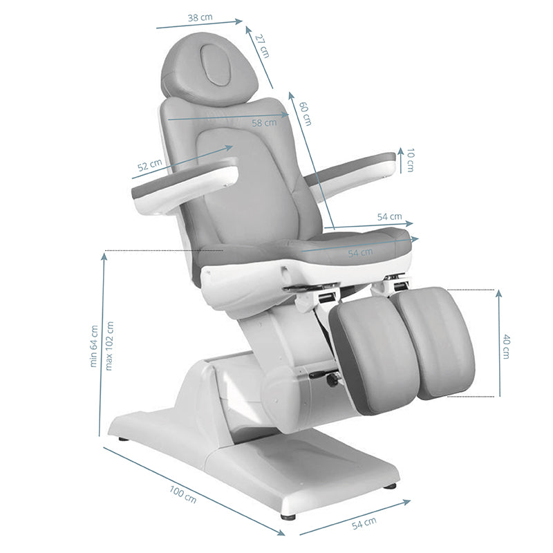 modern electrically adjustable cosmetic chair, ensuring comfort during the treatment not only for patients but also for the persons performing the procedure.