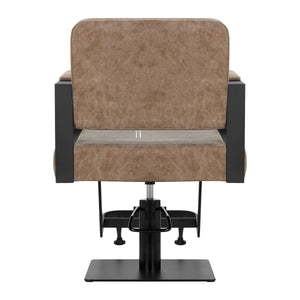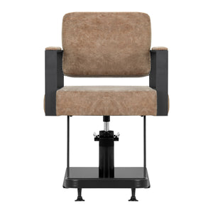 Equipping the chair with a full rotation mechanism makes the hairdresser's work more effective and comfortable. The solid, flat, square-shaped base guarantees stability during use. The matte-finished, smooth surface gives the element an elegant look and makes it easy to keep clean. A comfortable seat with foam filling ensures high comfort of use, even during many hours of treatments. Geometric, partially upholstered armrests allow for the correct positioning of the client's shoulders – this means that he does not bury his head in his shoulders or slouch – clearly making it easier to perform precise treatments, including haircuts.
