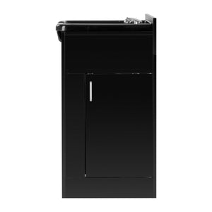 The side door provides easy access to the installation and allows storage of the most necessary products in a discreet way. The rear hole for the water connection allows for convenient and aesthetic connection of the station, while at the same time making it possible to hide the pipes and drain, which promotes maintaining order and a professional appearance of the station. The compact form of the furniture makes it ideal for both large salons and smaller spaces.