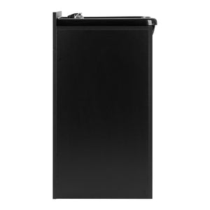 The barber station is made of furniture panels in shades of deep black, which gives it an elegant and expressive character – perfectly fitting into modern interiors. The set includes chrome fittings: a faucet, a shower handset and flexible hoses, ensuring full functionality. The chrome accents perfectly match the matte surface of the construction, emphasizing the modern style and professional finish of the furniture.