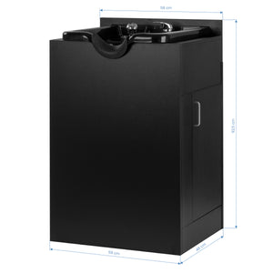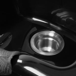 The deep black bowl is made of durable plastic, which makes it resistant to damage and easy to keep clean. Its well-thought-out design effectively reduces splashing of water and preparations during washing. The ergonomic shape and profiled collar with a silicone cover provide the client with a comfortable head position. A practical place for the shower handset helps to better organize the station, and the plug with a strainer makes it easier to control the water flow and maintain cleanliness and hygiene.