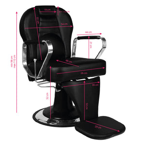 new in our offer - tiziano barber chair. is a modern, perfectly finished, economical piece of furniture. gives the customer of the salon the maximum feeling of comfort during the treatments performed. in addition to the up-down adjustment, the armchair has a reclining backrest. despite the small dimensions, it is possible to place the client in a convenient, reclining position. the comfortable seat is covered with high-quality eco-leather. a wide base guarantees the stability of the furniture during operation. an additional advantage is the easy adjustment of the headrest. a piece of furniture in black color.