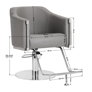 The Gabbiano Burgos hairdressing chair equipped with a hydraulic lift is a practical piece of furniture that will become an embellishment of a hairdressing salon. The classic color scheme, dedicated footrest and decorative elements in silver tones give it an elegant look. High functionality will provide comfort for both hairdressers and its users.