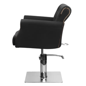 the elegance of this armchair is complemented by a square base made of high-quality inox steel.